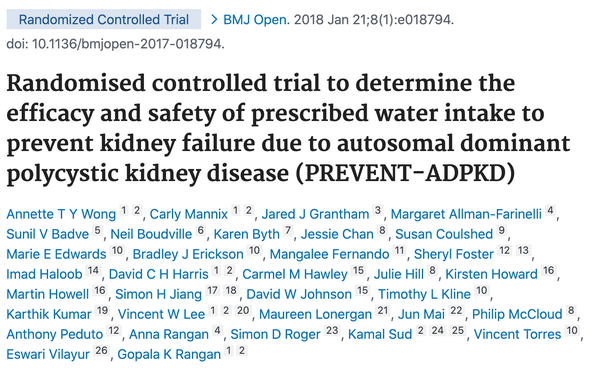 Randomised controlled trial to determine the efficacy and safety of prescribed water intake to prevent kidney failure due to autosomal dominant polycystic kidney disease (PREVENT-ADPKD)